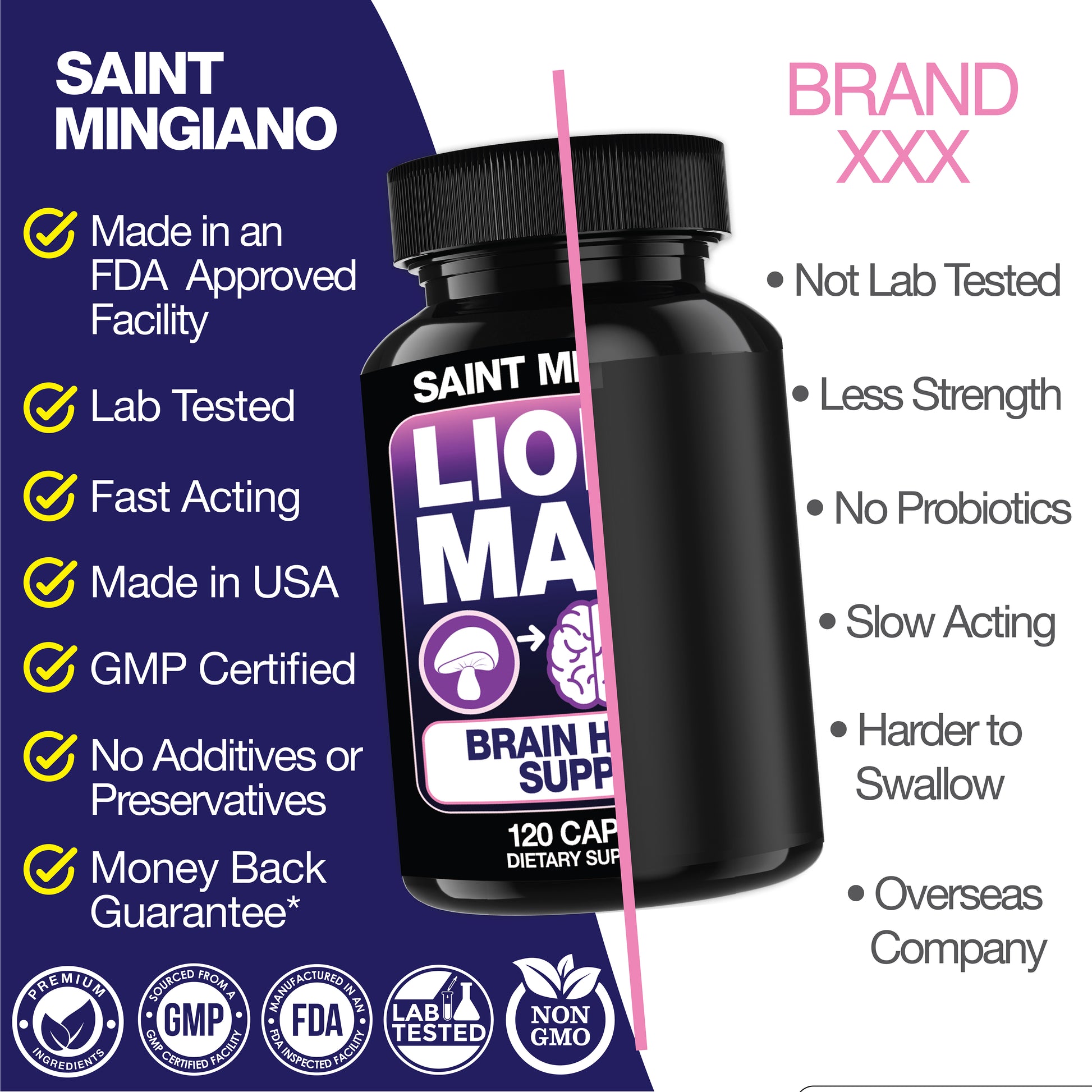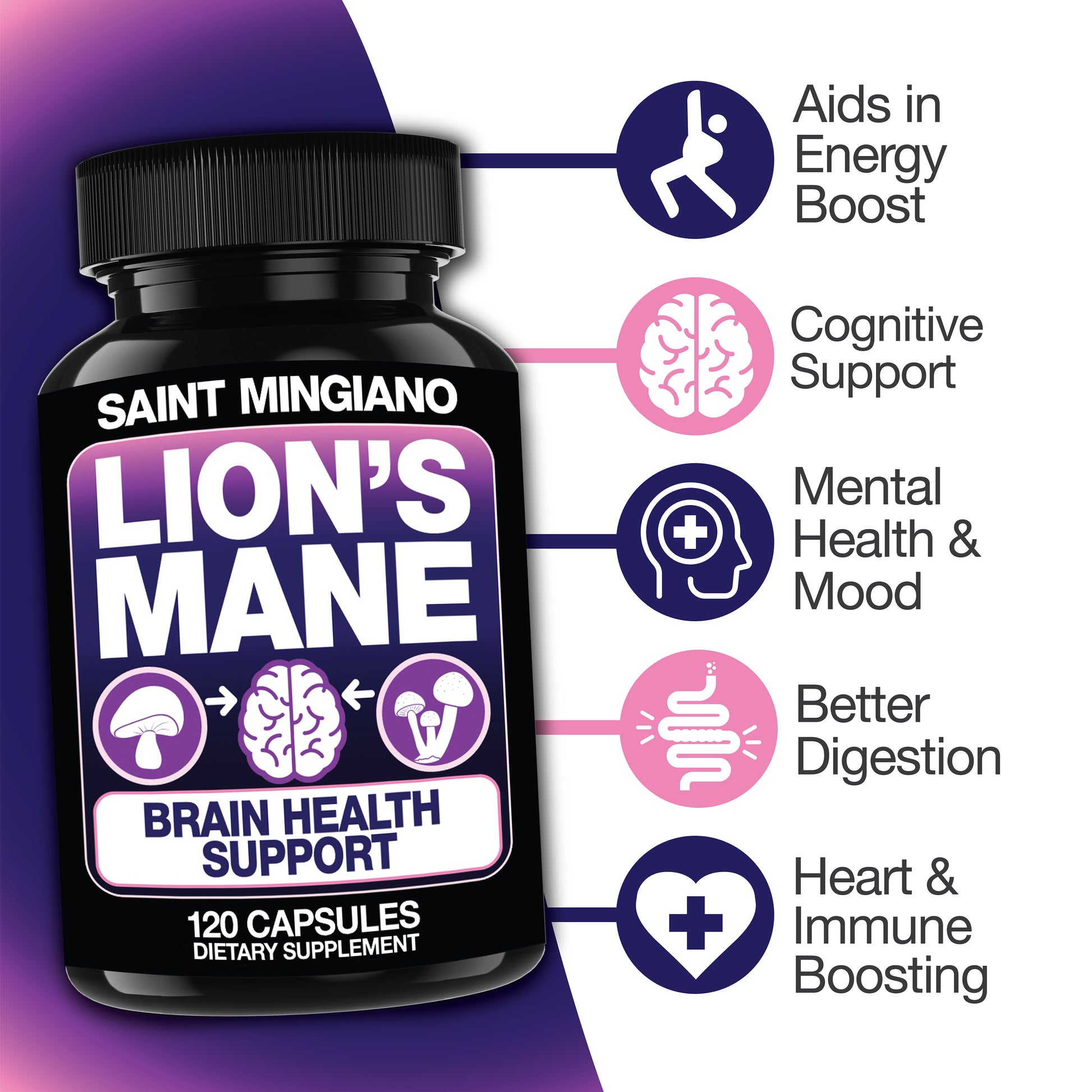 Saint Mingiano is happy to provide a 100% refund if you’re not satisfied with your Saint Mingiano Lion's Mane Mushroom Supplement in 120 Capsules.